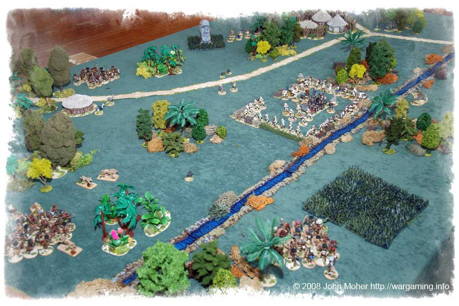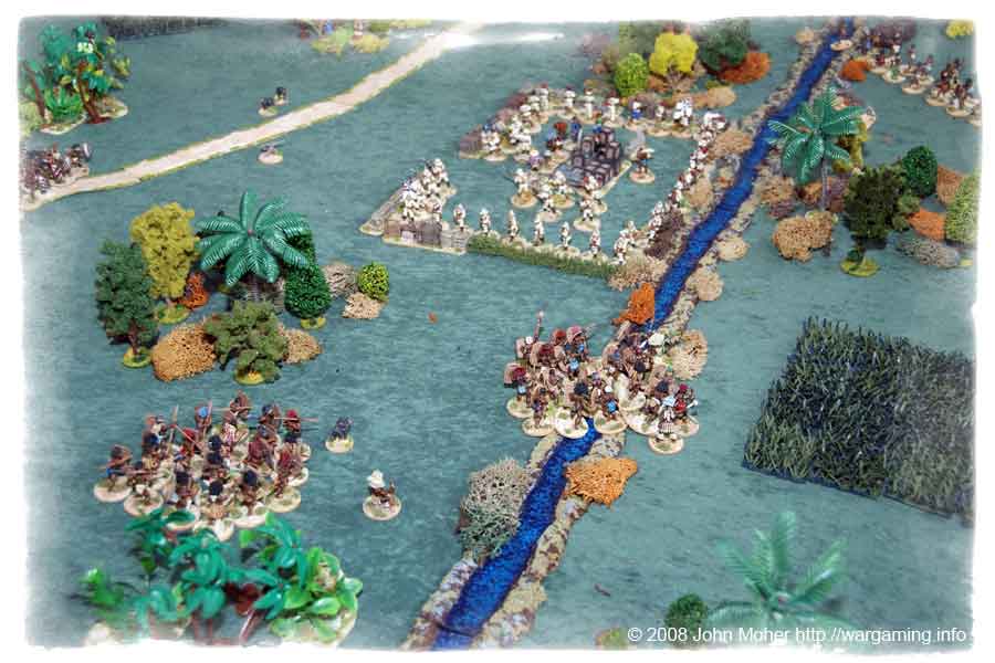 All the figures (including animals) in this game are from the collection of Kieran Manony, and the terrain is from both Kieran’s & my collections…