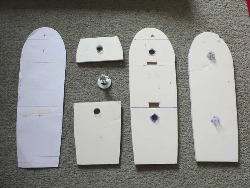 The bulkheads were slightly lower than the plans as I had to allow for the thicker foamboard I used for the hull sections. You can also see the recesses for the doors and the details on the steps (Photo 3).