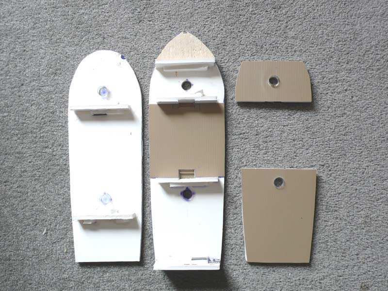 I’ve also glued the bulkheads on to the hull sections and added some reinforcing. I used foamboard off cuts to help reinforce the joints.