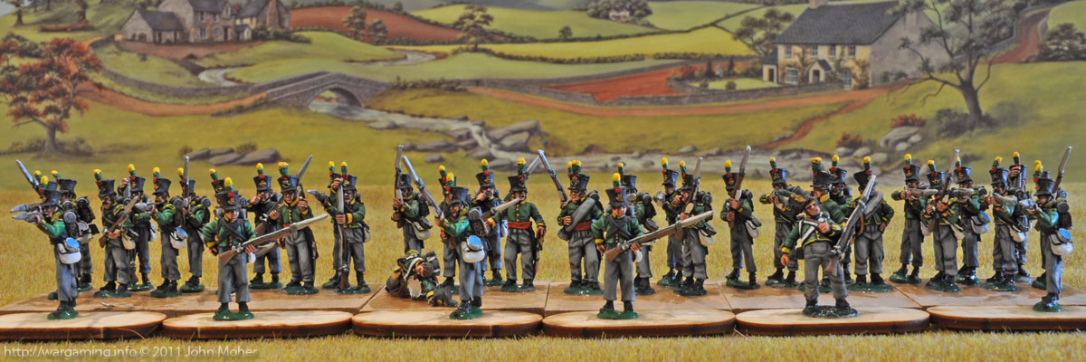 27th (Dutch) Jäger Battalion (Regiment) – The 27th Jäger were a fairly large unit (over 800 men) so warrant representation as a large unit (6-bases) in Lasalle. I have also modelled 6 Skirmisher stands for them to allow for the whole battalion being broken down into companies to reinforce the skirmishers of the other battalions. Like the 2nd Nassau-Usingen Regiment this is one of my favourite ‘Hundred Days‘ units, again perhaps due to a mix of the uniform’s colours & appearance, and the life in the Perry Miniatures figures, such as the officer brandishing a flintlock pistol, expressions on many of the Jägers’ faces, etc…