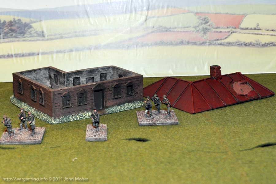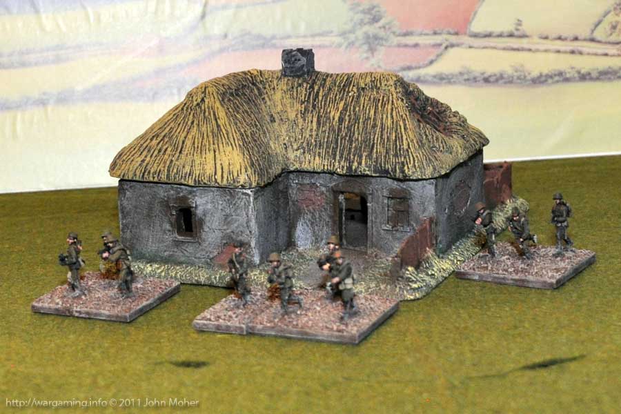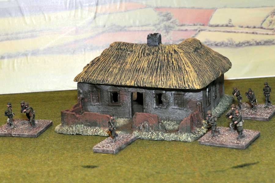 Right now my 20mm WW2 & Modern era buildings are rather bare on the ground – I have a couple of very nice larger 15mm TimeCast buildings (a Belgian Townhouse and a Petrol Station), and a 20mm bombed out German HQ Building from ESLO. Otherwise I have some plastic kits awaiting completion (Airfix Jungle Outpost & the 2 Italeri Farmhouse & Manor kits) and a 20mm resin Jungle Building from Frontline. So my existing Western Europe and new Eastern Europe theatre troops desperately need buildings for their games – not to mention long-term Mediterranean/North African and more Pacific/Burma stuff! Consequently I have been purchasing several new Western & Eastern European buildings from about 5 different manufacturers (i.e. Lancer, Area 9, Hovels, TST, Sentry) – and where possible have chosen to purchase them pre-painted to save time, and get some terrain (especially Eastern Front) usable as promptly as possible. The first of these to arrive are from Lancer Miniatures in the UK, which arrived promptly in NZ just 1 week after ordering.