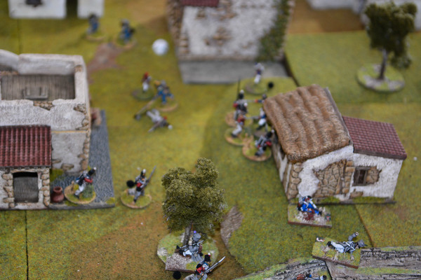 The end is near – The British Officer has gone down, and the British Sergeant is about to follow (both in the centre of picture) – with the loss of their leaders the surviving British follow the Nassau-Usingen troops back across the stream, and the village is successfully in French hands for the evening…