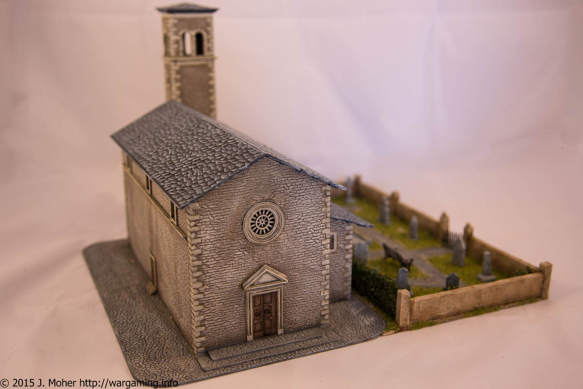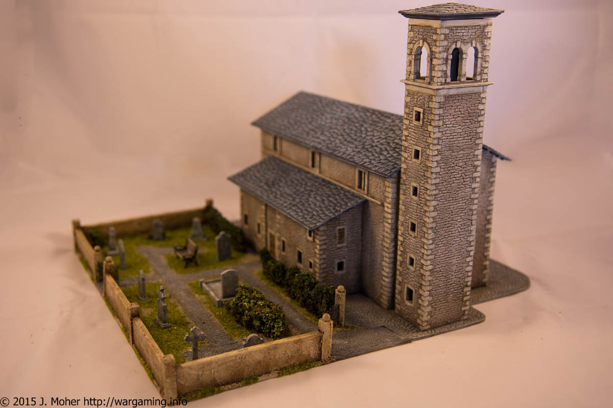 Following on from my last post (Italeri Country House With Porch) the other model I picked up from Kieran’s cancelled commission project was the Church (Italeri Kit 6129). This includes an attached (custom made) cemetery and is an outstanding model (if somewhat large). Ther design makes this primarily suited to Northern Mediterranean areas (and Southern Europe), such as Spain, Italy, and Southern France, as well as possibly Croatia, Northern Bosnia, etc, and possibly Southern Austria and the like…