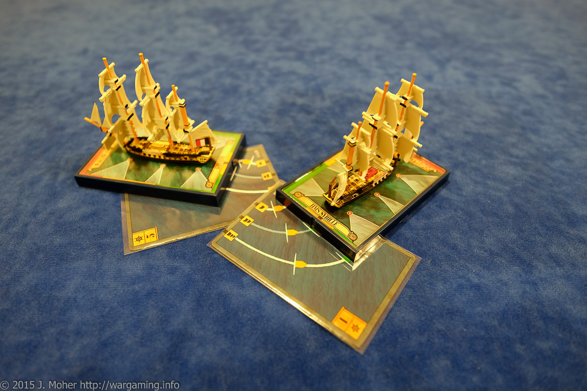 This was my first ever game of Sails of Glory – it was played solo with the basic (introductory) version of the rules and was easy and great fun, it augurs well for playing more age of sail gaming in the future! I was Capitaine Géroux commanding the Dryade, and HMS Sybille was run using the campaign’s AI (Artificial Intelligence) system. The scenario was the first game (January Scenario) of the 2015 Solo Campaign being played by members of the Sails of Glory Anchorage Forum. This is a great community for like minded people who enjoy Sails of Glory (commonly abbreviated SoG or SGN for Sails of Glory: Napoleonic). With new ships starting to arrive, there should be enough here for all but the most hardcore age of sail gamer!