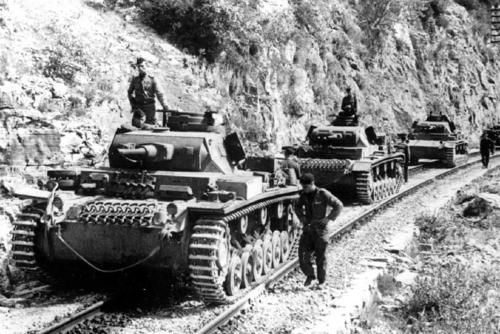 GERMAN XXXX CORPS General Stumme CORPS TROOPS (Part only) QUALITY: Regular. II/24th LUFTWAFFE FLAK BATTALION: 1st HEAVY BATTERY: 1 88mm Flak & Tractor. 525th PANZERJAGER BATTALION: 3rd PANZERJAGER COMPANY: 2 47mm Pak36(t) & Trucks.**** 128th ARTILLERY BRIGADE: 154th ARTILLERY BATTALION: 3 150mm M37 Czech How, 3 Trucks.***** 666th PIONEER BATTALION:* 1st PIONEER COMPANY: 3 Engineer Platoons, 3 Trucks. 9th PANZER DIVISION QUALITY: Veteran. DIVISIONAL HEADQUARTERS: 1 HQ Platoon, 1 MG Platoon, 2 Trucks. 33rd PANZER REGIMENT: REGIMENTAL HQ: 1 HQ PzBefw I, 1 Recon PzKpfw II. I PANZER BATTALION: BATTALION HEADQUARTERS: 1 HQ PzKpfw IIIF, 1 Recon PzKpfw I. 1st LIGHT COMPANY: 1 PzKpfw IIIG, 1 PzKpfw IIIF, 1 PzKpfw II. 2nd LIGHT COMPANY: 2 PzKpfw IIIG, 1 PzKpfw II. 3rd MEDIUM COMPANY: 2 PzKpfw IVD, 1 PzKpfw II. II PANZER BATTALION: Organised exactly as I/3rd Panzer Battalion. 9th SCHÜTZEN BRIGADE: BRIGADE HEADQUARTERS: 1 HQ Platoon & Truck. 701st sIG(sf) COMPANY: 1 Gw I 150mm sIG. 59th MOTORCYCLE BATTALION: BATTALION HEADQUARTERS: 1 HQ Platoon & 1 Truck. 3 M/CYCLE RIFLE COMPANIES, each: 3 M/cycle Rifle Platoons. 1 M/CYCLE MG COMPANY: 2 M/cycle HMG Platoons, 1 81mm Mortar Platoon & Truck. 1 HEAVY WEAPONS COMPANY: 1 Pak35, 1 75/12 IG, 1 Engineer Platoon, 3 Trucks. 10th SCHÜTZEN REGIMENT: REGIMENTAL HEADQUARTERS: 1 HQ Platoon, 1 Recon M/cycle SMG Platoon, 1 Engineer Platoon, 2 Trucks. REGIMENTAL GUN COMPANY: 1 75/12 IG & Truck. I SCHÜTZEN BATTALION: BATTALION HEADQUARTERS: 1 HQ Platoon & Truck. 1st SCHÜTZEN COMPANY, GEPANZERT: 3 Rifle Platoons, 3 Sdkfz 251/1. 2nd & 3rd SCHÜTZEN COMPANIES, each: 3 Rifle Platoons, 3 Trucks. 1 MG COMPANY: 2 HMG Platoons, 1 81mm Mortar, 3 Trucks. 1 HEAVY WEAPONS COMPANY: 1 Pak35, 1 75/12 IG, 1 Engineer Platoon, 3 Trucks. II SCHÜTZEN BATTALION: BATTALION HEADQUARTERS: 1 HQ Platoon & Truck. 3 SCHÜTZEN COMPANIES, each: 3 Rifle Platoons, 3 Trucks. 1 MG COMPANY: 2 HMG Platoons, 1 81mm Mortar, 3 Trucks. 1 HEAVY WEAPONS COMPANY: 1 Pak35, 1 75/12 IG, 1 Engineer Platoon, 3 Trucks. 11th SCHÜTZEN REGIMENT: REGIMENTAL HEADQUARTERS: 1 HQ Platoon, 1 Recon M/cycle SMG Platoon, 1 Engineer Platoon, 2 Trucks. REGIMENTAL GUN COMPANY: 1 75/12 IG & Truck. I SCHÜTZEN BATTALION: BATTALION HEADQUARTERS: 1 HQ Platoon & Truck. 3 SCHÜTZEN COMPANIES, each: 3 Rifle Platoons, 3 Trucks. 1 MG COMPANY: 2 HMG Platoons, 1 81mm Mortar, 3 Trucks. 1 HEAVY WEAPONS COMPANY: 1 Pak35, 1 75/12 IG, 1 Engineer Platoon, 3 Trucks. II SCHÜTZEN BATTALION: Organised exactly as I/11th Schützen Battalion. 102nd ARTILLERY REGIMENT: REGIMENTAL HEADQUARTERS: 1 HQ Platoon & Truck. I FIELD ARTILLERY BATTALION: 3 105/28 Howitzers, 3 Trucks. II FIELD ARTILLERY BATTALION: 3 105/28 Howitzers, 3 Trucks. III HEAVY ARTILLERY BATTALION: 3 150/30 Howitzers, 3 Trucks. 9th AUFLARUNG (RECON) BATTALION: BATTALION HEADQUARTERS: 1 HQ Sdkfz 223 A/car. 1st ARMOURED RECONAISSANCE COMPANY: 1 Sdkfz 231 A/car, 2 Sdkfz 222 A/cars, 2 Sdkfz 221 A/cars. 2nd M/CYCLE RECONAISSANCE COMPANY: 3 M/cycle Rifle Platoons. 3rd HEAVY WEAPONS COMPANY: 1 Pak35, 1 75/12 IG, 1 Engineer Platoon, 3 Trucks. 50th PANZERJAGER BATTALION: BATTALION HEADQUARTERS: 1 HQ Platoon & Truck. 3 PZJGR COMPANIES, each: 3 Pak35 & Trucks. 3/47th LIGHT FLAK COMPANY: 3 Sdkfz 10/4 20mm (Zgkw 1). 86th PIONEER BATTALION:* BATTALION HEADQUARTERS: 1 HQ Platoon & Truck. 1st & 2nd PIONEER COMPANIES, each: 3 Engineer Platoons, 3 Trucks. 3rd PANZER PIONEER COMPANY: (not present). 86th BATTALION BRIDGING COLUMNS: (not present). 86th LUFTWAFFE LIGHT FLAK BATTALION: BATTALION HEADQUARTERS: 1 HQ Platoon & Truck. 3 FLAK COMPANIES, each: 3 20mm Flak, 3 Trucks. S.S. LEIBSTANDARTE "Adolf Hitler" DIVISION QUALITY: Regular. DIVISIONAL HEADQUARTERS: 1 HQ Platoon, 1 HMG Platoon, 2 Trucks. I MOTORISED BATTALION: BATTALION HEADQUARTERS: 1 HQ Platoon & Truck. 3 RIFLE COMPANIES, each: 3 Rifle Platoons, 3 Trucks. 1 MG COMPANY: 3 HMG Platoons, 3 Trucks. 1 HEAVY WEAPONS COMPANY: 1 Pak35, 1 81mm Mtr Platoon, 1 Engineer Platoon, 3 Trucks. II MOTORISED BATTALION: Organised exactly as I Motorised Battalion. III MOTORISED BATTALION: Organised exactly as I Motorised Battalion. IV AUFLARUNG (RECON) BATTALION: BATTALION HEADQUARTERS: 1 HQ Platoon & Truck. 2 M/CYCLE RECONAISSANCE COMPANIES, each: 1 M/cycle SMG Platoon, 2 SMG Platoons in Schwimmwagen (or Kubelwagen), 1 HMG Platoon in Truck. 3rd ARMOURED RECONAISSANCE COMPANY: 1 Sdkfz 231, 2 Sdkfz 222 A/cars, 1 Sdkfz 221 A/car. 4th HEAVY WEAPONS COMPANY: 1 Pak35, 1 Engineer Platoon, 1 81mm Mtr Platoon, 3 Trucks. V HEAVY WEAPONS BATTALION: BATTALION HEADQUARTERS: 1 HQ Platoon & Truck. 1st GUN COMPANY: 2 75/12 IG, 2 Trucks. 2nd GUN COMPANY: 1 150/11 sIG & Truck. 3rd PANZERJAGER COMPANY: 2 PzJgr IB. 4th STURM ARTILLERY COMPANY: 1 StuG IIIB. 5th FLAK COMPANY: 4 Sdkfz 6/2 37mm SP Flak.** ADOLF HITLER ARTILLERY REGIMENT: REGIMENTAL HEADQUARTERS: 1 HQ Platoon & Truck. I/AH ARTILLERY BATTALION: 3 105/28 Howitzers, 3 Trucks. II/AH ARTILLERY BATTALION: 2 150/30 Howitzers, 1 88mm Flak, 3 Trucks/Tractors. ADOLF HITLER PIONEER BATTALION:* BATTALION HEADQUARTERS: 1 HQ Platoon & Truck. 3 PIONEER COMPANIES, each: 3 Engineer Platoons, 3 Trucks. A.H. BATTALION BRIDGING COLUMN: (not present). (73rd INFANTRY DIVISION and balance of Corps Troops are not present as they are occupied securing Southern Yugoslavia.) LUFTWAFFE AIR SUPPORT 2 FAC (1 for each Division) A maximum of 6 sorties in total per day can be received shared between the 2 FACs - each time a sortie is successfully called in throw 2D6 and modify (+1 if no sorties have arrived yet this day; -1 if a sortie arrived in the 3 previous game turns to this one) to see what air support arrived: 12-13 = 3 x Ju-87 Stukas (DEF 4, BOMBS 2) 11 = 2 x Me Bf-110 (DEF 4, CANNON 4) 10 = 2 x Ju-87 Stukas (DEF 4, BOMBS 2) 9 = 1 x Me Bf-110 (DEF 4, CANNON 4) 6-8 = 1 x Ju-87 Stuka (DEF 4, BOMBS 2) 5 = 2 x Me Bf-109 (DEF 4, CANNON 5). 1-4 = 1 x Me Bf-109 (DEF 4, CANNON 5). When Air Support is requested roll randomly to determine which mission arr